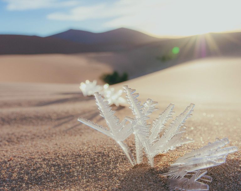 Eiskristalle im heißen Sand:
